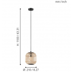 43231 Подвес BORDESLEY 1x28W (E27) D210 H1100 сталь черный/дерево натуральный