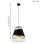 49446 Подвес AUSTELL 1х60W (E27) D360 H1100 сталь черный/текстиль черный золотой