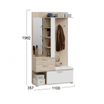 Эрика Набор мебели для прихожей Секция комбинированная с крючками и зеркалом Светлый вариант