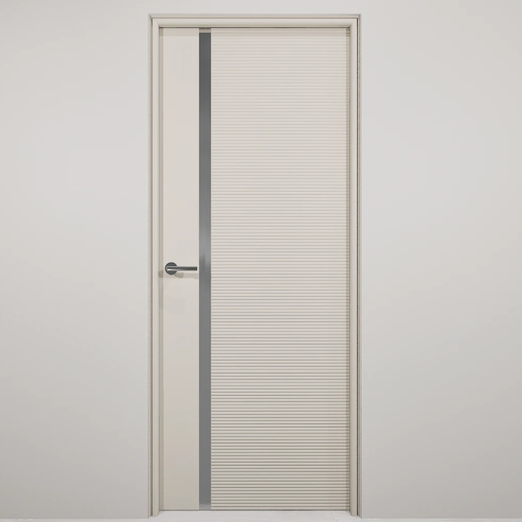 Полотно-каркас массив сосны, облицованный с 2х сторон монолитной плитой МДФ, с Горизонтальной фрезеровкой и зеркалом. Покрытие-Эмаль. Полотно 400 мм. изготавливается без зеркала.