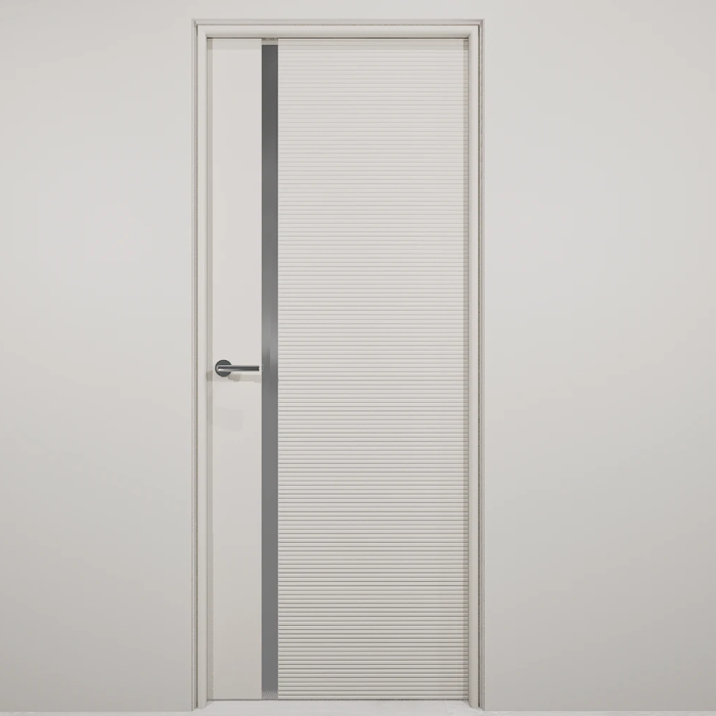Полотно-каркас массив сосны, облицованный с 2х сторон монолитной плитой МДФ, с Горизонтальной фрезеровкой и зеркалом. Покрытие-Эмаль. Полотно 400 мм. изготавливается без зеркала.