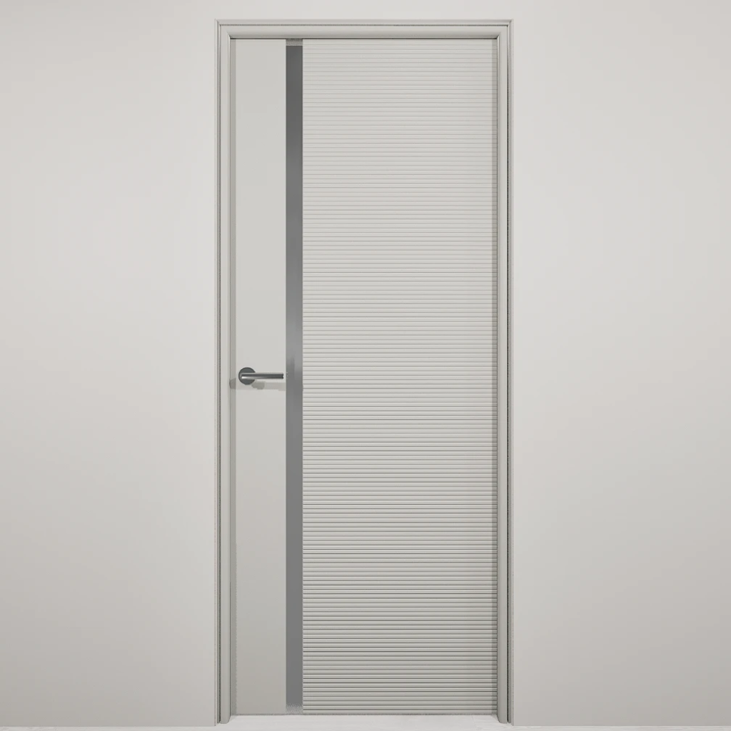 Полотно-каркас массив сосны, облицованный с 2х сторон монолитной плитой МДФ, с Горизонтальной фрезеровкой и зеркалом. Покрытие-Эмаль. Полотно 400 мм. изготавливается без зеркала.