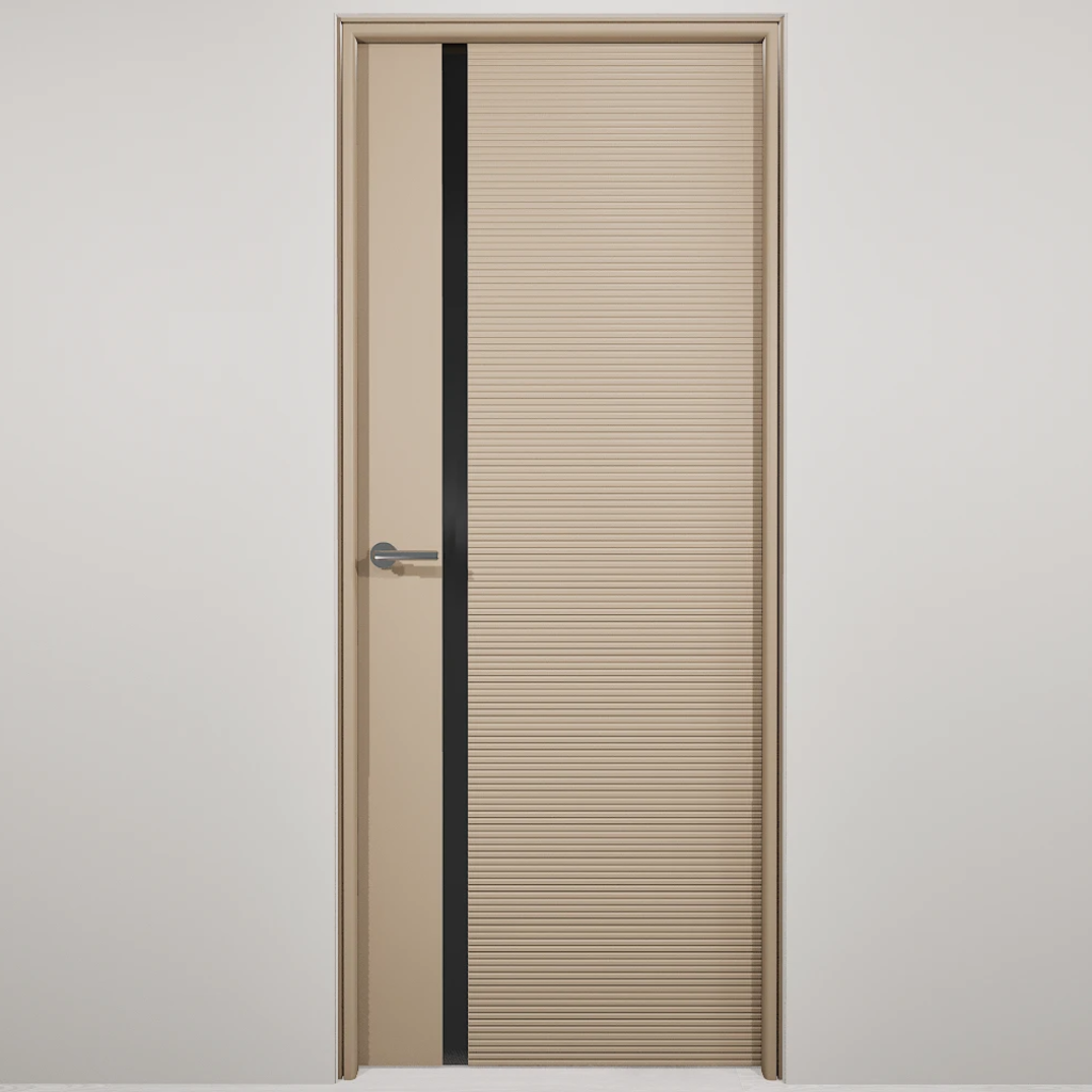 Полотно-каркас массив сосны, облицованный с 2х сторон монолитной плитой МДФ, с Горизонтальной фрезеровкой и зеркалом. Покрытие-Эмаль. Полотно 400 мм. изготавливается без зеркала.
