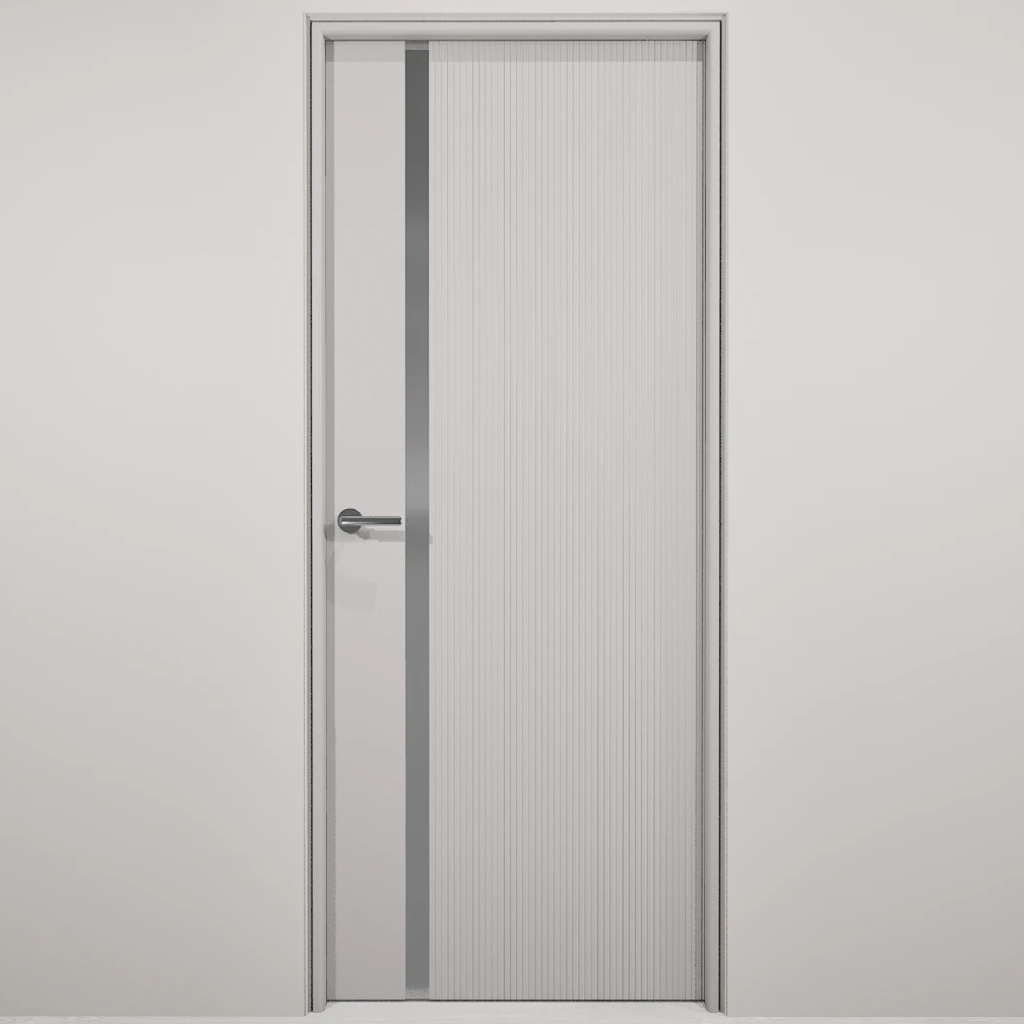 Полотно-каркас массив сосны, облицованный с 2х сторон монолитной плитой МДФ, с вертикальной фрезеровкой и зеркалом. Покрытие-Эмаль. Полотно 400 мм. изготавливается без зеркала.