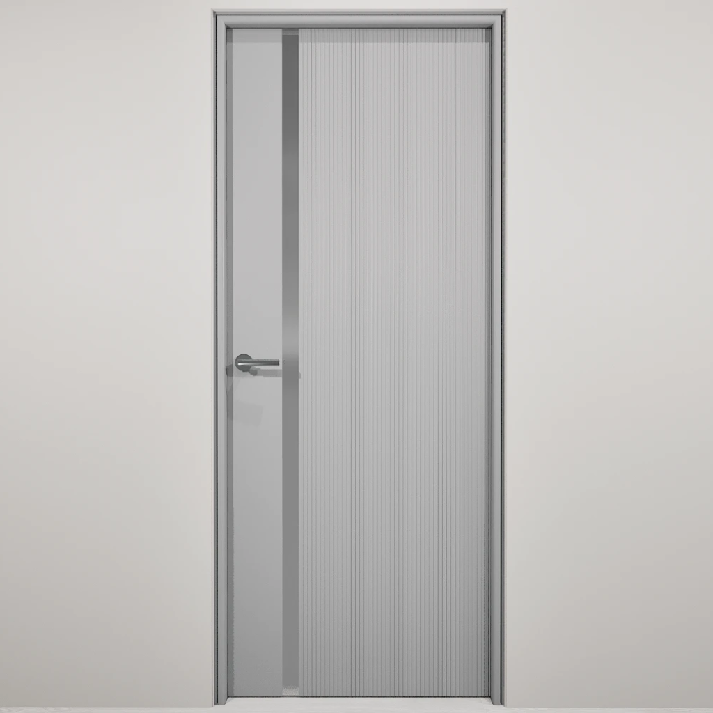 Полотно-каркас массив сосны, облицованный с 2х сторон монолитной плитой МДФ, с вертикальной фрезеровкой и зеркалом. Покрытие-Эмаль. Полотно 400 мм. изготавливается без зеркала.