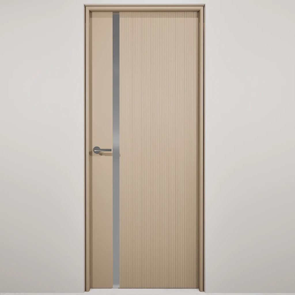 Полотно-каркас массив сосны, облицованный с 2х сторон монолитной плитой МДФ, с вертикальной фрезеровкой и зеркалом. Покрытие-Эмаль. Полотно 400 мм. изготавливается без зеркала.