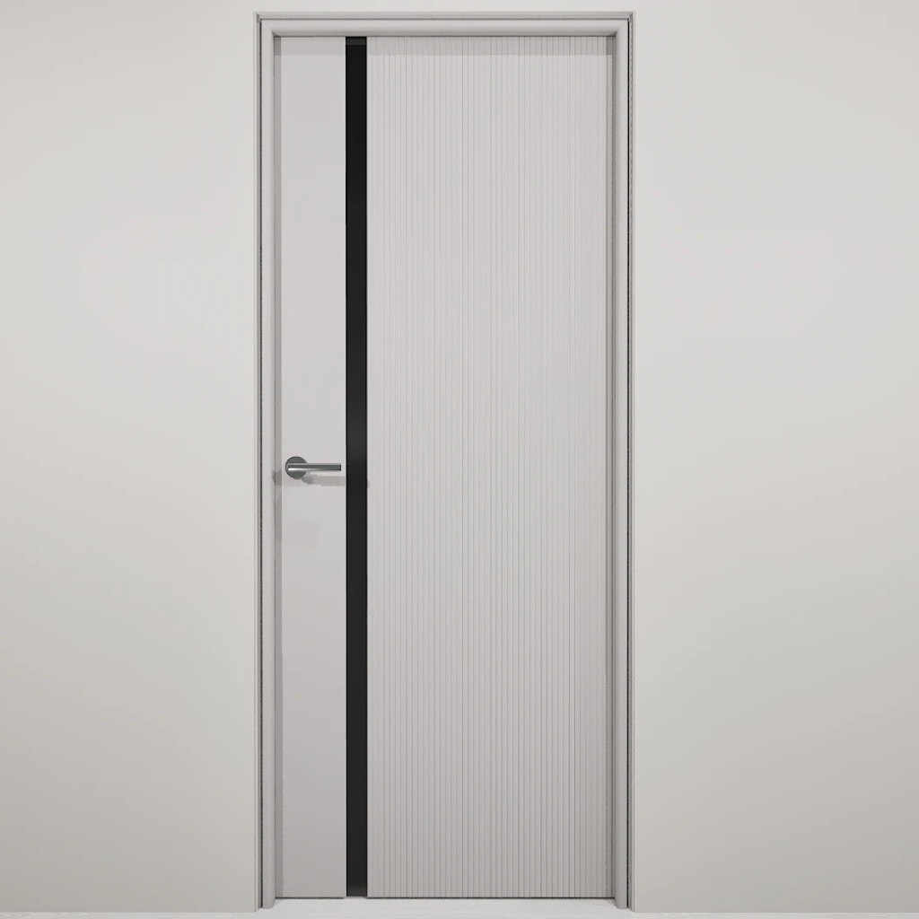 Полотно-каркас массив сосны, облицованный с 2х сторон монолитной плитой МДФ, с вертикальной фрезеровкой и зеркалом. Покрытие-Эмаль. Полотно 400 мм. изготавливается без зеркала.