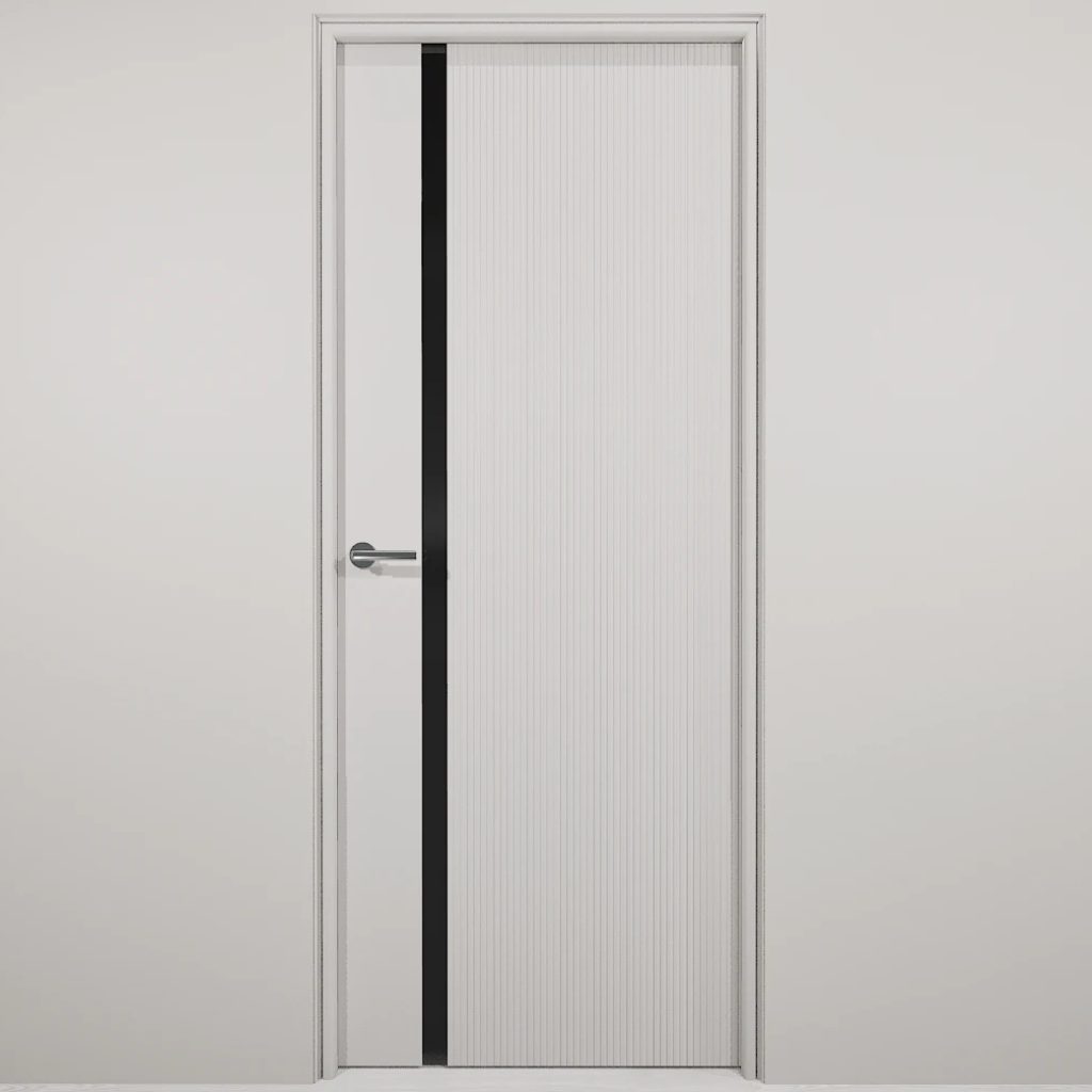 Полотно-каркас массив сосны, облицованный с 2х сторон монолитной плитой МДФ, с вертикальной фрезеровкой и зеркалом. Покрытие-Эмаль. Полотно 400 мм. изготавливается без зеркала.