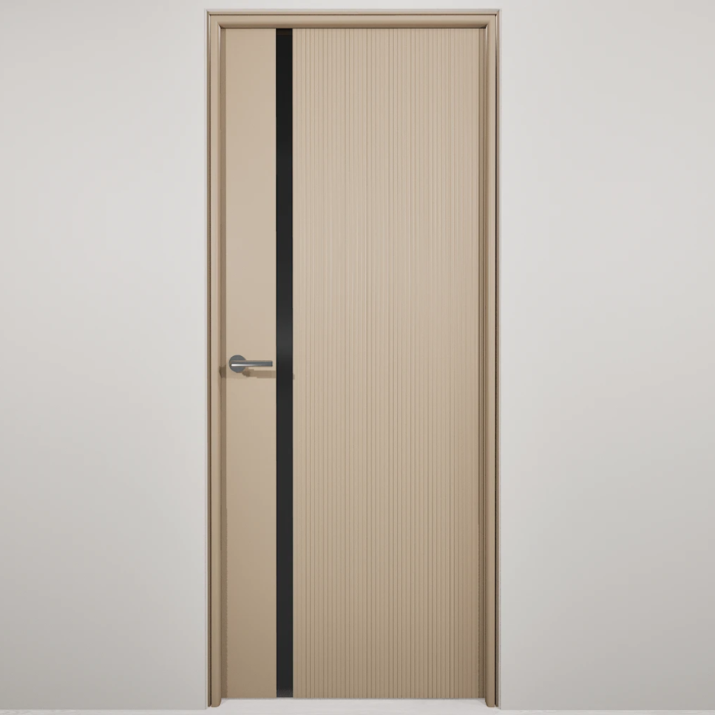 Полотно-каркас массив сосны, облицованный с 2х сторон монолитной плитой МДФ, с вертикальной фрезеровкой и зеркалом. Покрытие-Эмаль. Полотно 400 мм. изготавливается без зеркала.
