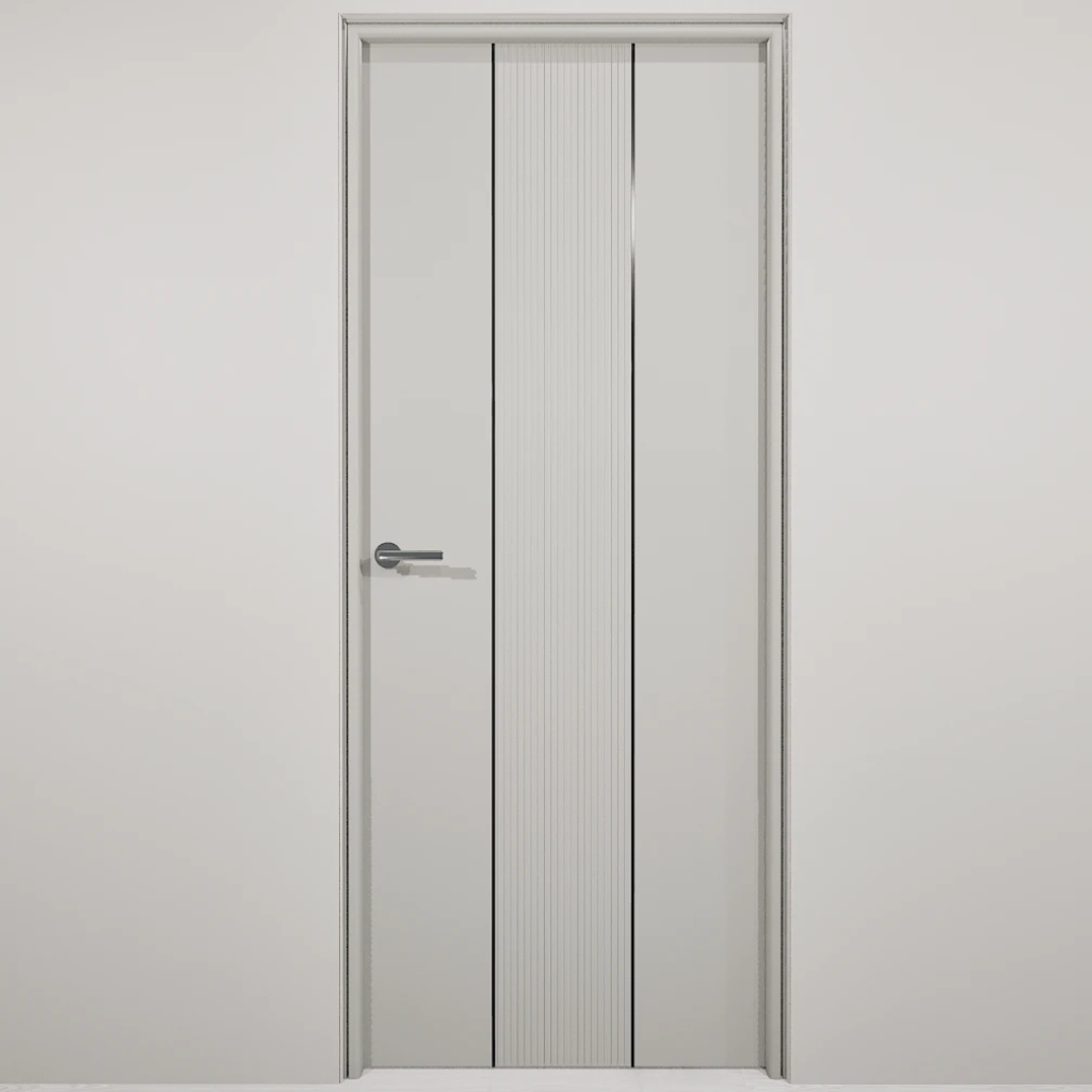 Полотно-каркас массив сосны, облицованный с 2х сторон монолитной плитой МДФ, с вертикальной фрезеровкой и молдингом. Покрытие-Эмаль. Кромка с двух сторон по торцам полотна.