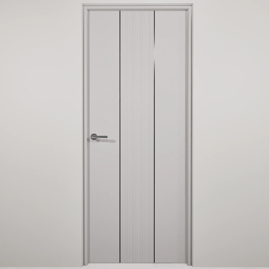 Полотно-каркас массив сосны, облицованный с 2х сторон монолитной плитой МДФ, с вертикальной фрезеровкой и молдингом. Покрытие-Эмаль. Кромка с двух сторон по торцам полотна.