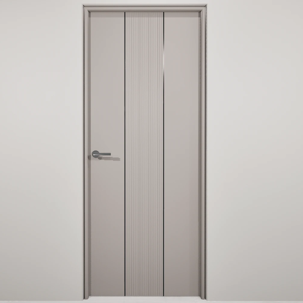 Полотно-каркас массив сосны, облицованный с 2х сторон монолитной плитой МДФ, с вертикальной фрезеровкой и молдингом. Покрытие-Эмаль. Кромка с двух сторон по торцам полотна.