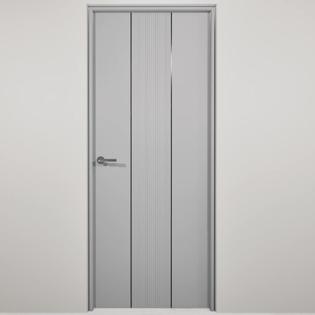 Полотно-каркас массив сосны, облицованный с 2х сторон монолитной плитой МДФ, с вертикальной фрезеровкой и молдингом. Покрытие-Эмаль. Кромка с двух сторон по торцам полотна.