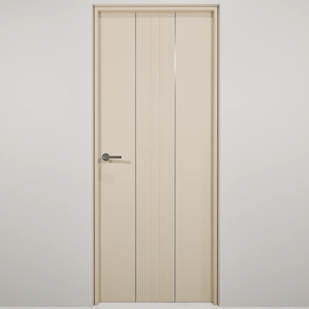 Полотно-каркас массив сосны, облицованный с 2х сторон монолитной плитой МДФ, с вертикальной фрезеровкой и молдингом. Покрытие-Эмаль. Кромка с двух сторон по торцам полотна.