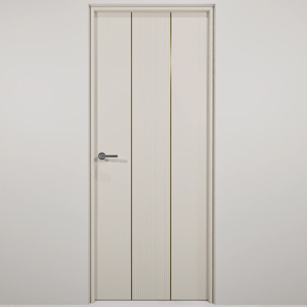 Полотно-каркас массив сосны, облицованный с 2х сторон монолитной плитой МДФ, с вертикальной фрезеровкой и молдингом. Покрытие-Эмаль. Кромка с двух сторон по торцам полотна.