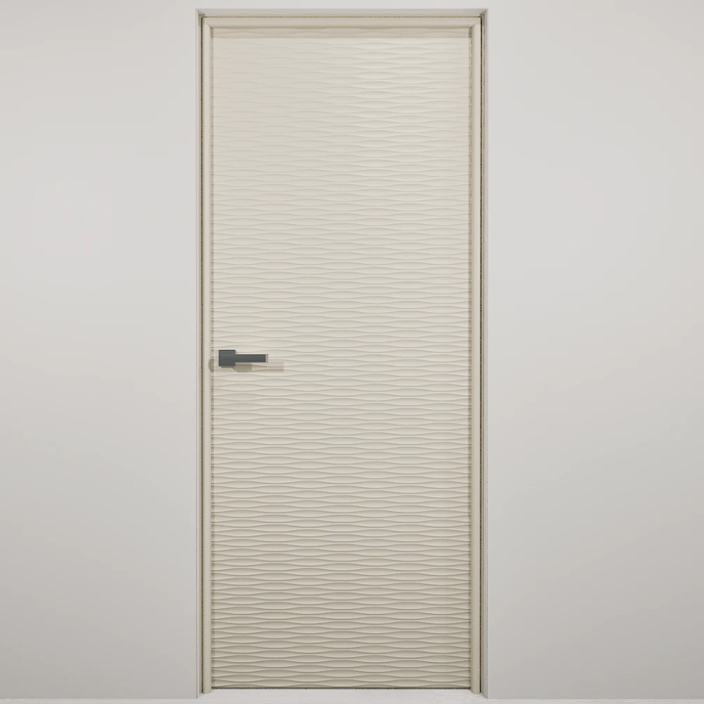 Полотно-каркас массив сосны, облицованный с 2х сторон монолитной плитой МДФ, с волнообразной фрезеровкой. Покрытие-Эмаль.