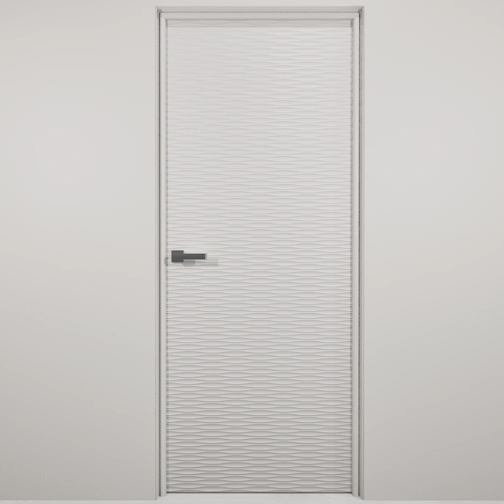 Полотно-каркас массив сосны, облицованный с 2х сторон монолитной плитой МДФ, с волнообразной фрезеровкой. Покрытие-Эмаль.