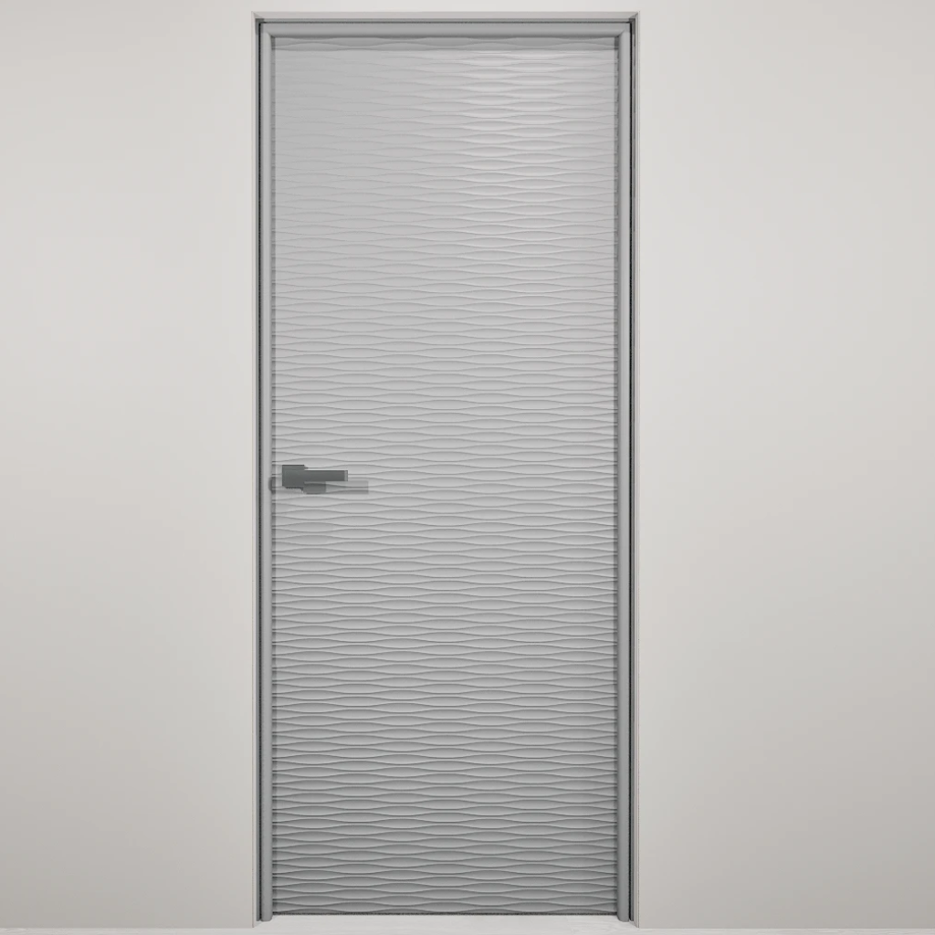 Полотно-каркас массив сосны, облицованный с 2х сторон монолитной плитой МДФ, с волнообразной фрезеровкой. Покрытие-Эмаль.