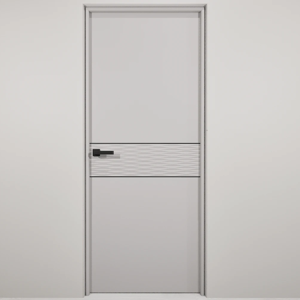 Полотно-каркас массив сосны, облицованный с 2х сторон монолитной плитой МДФ, с волнообразной фрезеровкой и молдингом. Покрытие-Эмаль.