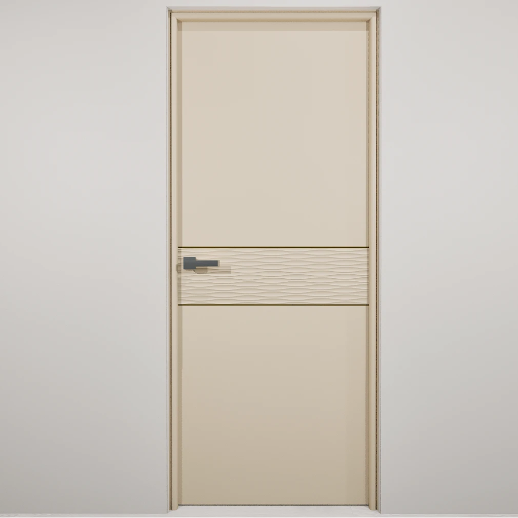 Полотно-каркас массив сосны, облицованный с 2х сторон монолитной плитой МДФ, с волнообразной фрезеровкой и молдингом. Покрытие-Эмаль.